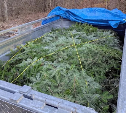 All our wreaths are made from Balsam Fir tips gathered by hand in Québec. I choose only the best tips, grown in the shade so that the needles lay flat. All greenery is locally harvested on our property in Derry, NH.